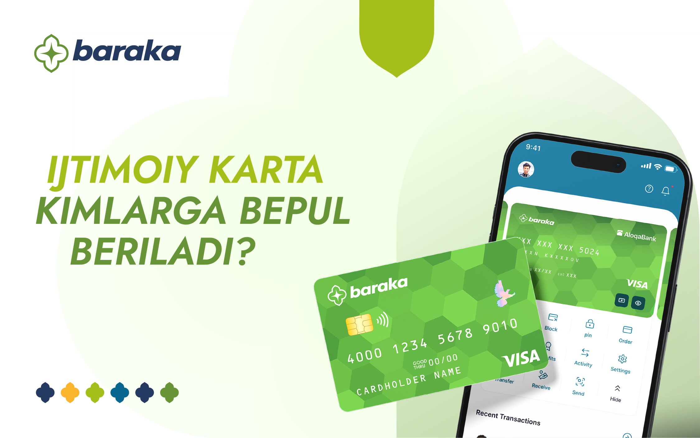 Ijtimoiy yordam va xizmatlarni olish va boshqarish yanada osonlashdi. “Aloqabank” va “Xalq bank” tomonidan chiqarilgan Baraka Visa kartasi orqali siz nafaqat O‘zbekiston, balki butun dunyo bo‘ylab POS-terminallarda xaridlar uchun to‘lovlarni amalga oshirishingiz mumkin.