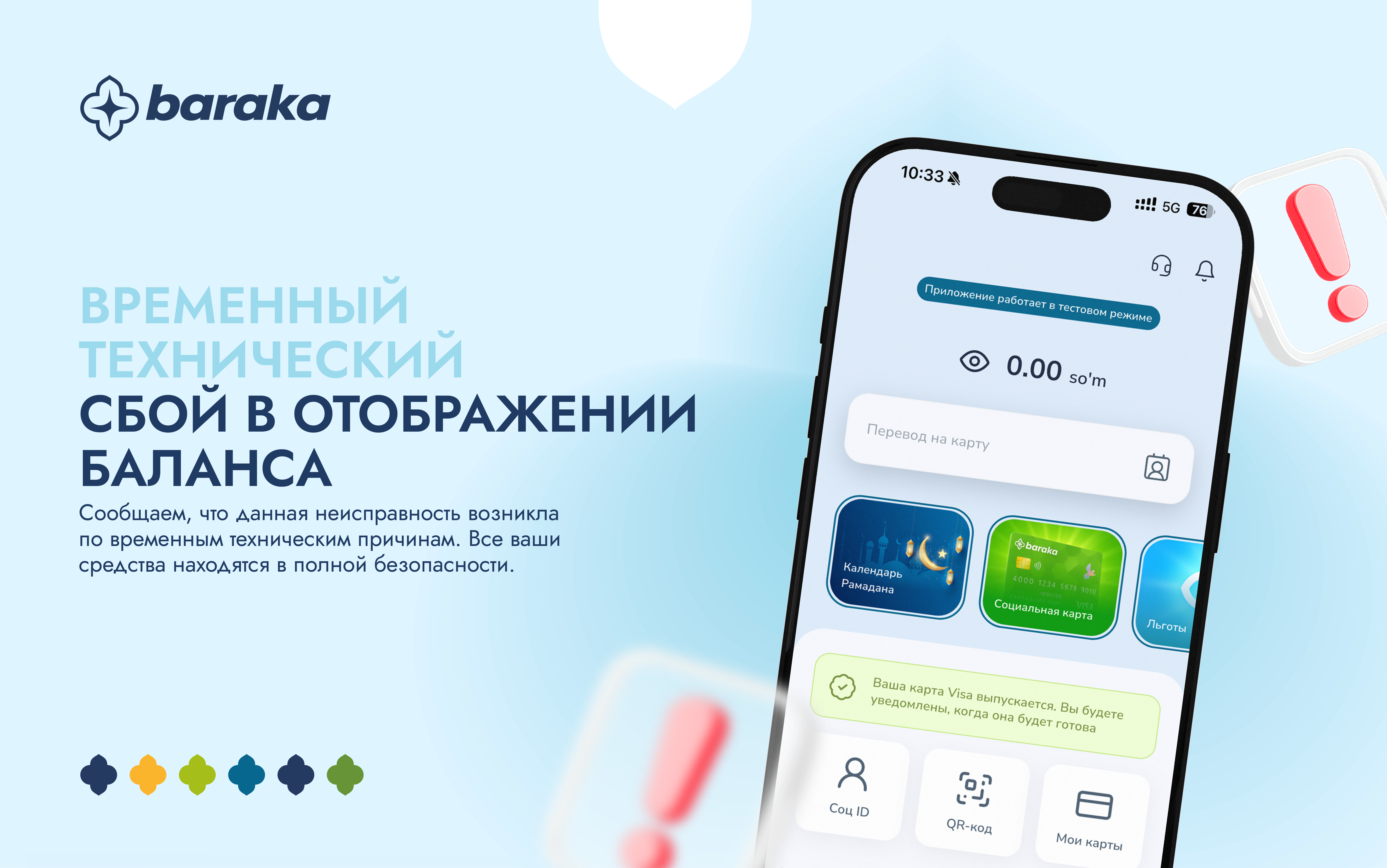 Уважаемые пользователи, в настоящее время в мобильном приложении Baraka у некоторых пользователей может некорректно отображаться баланс или показываться нулевой остаток.